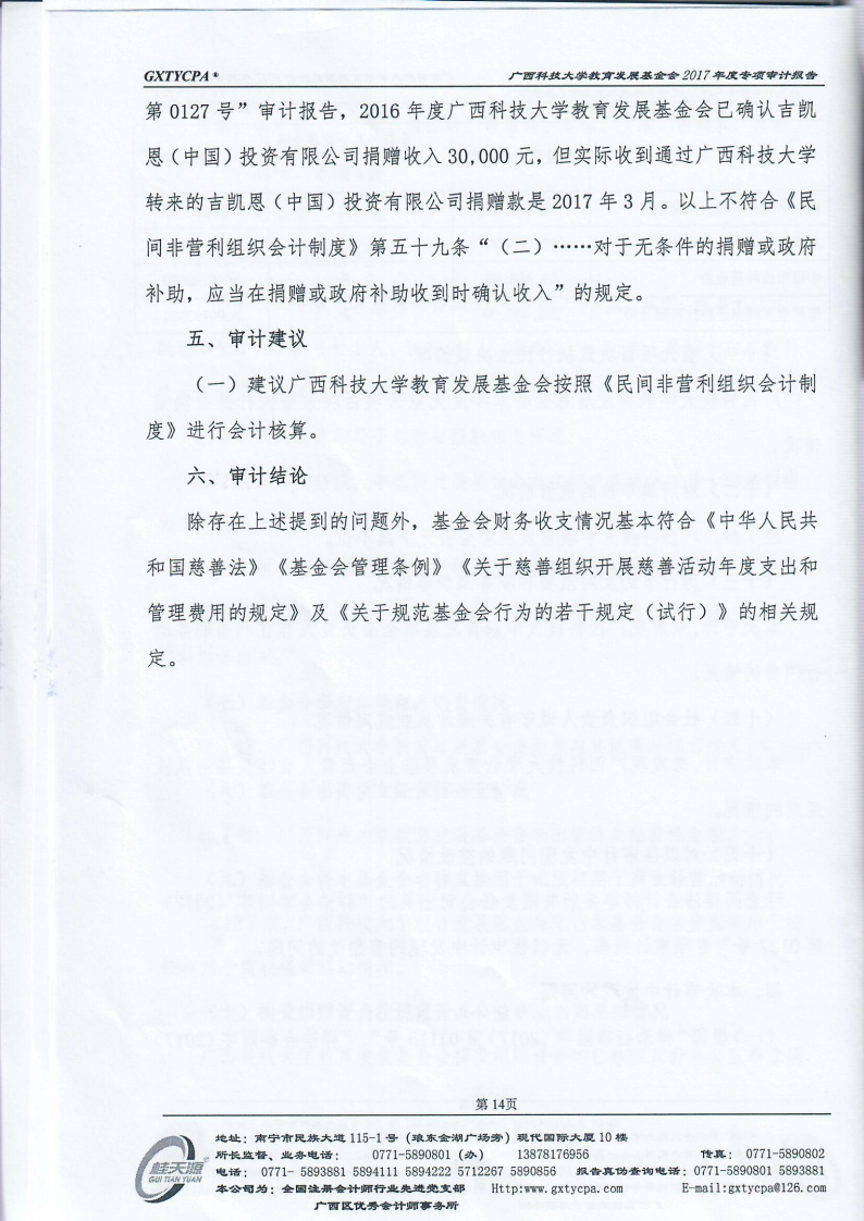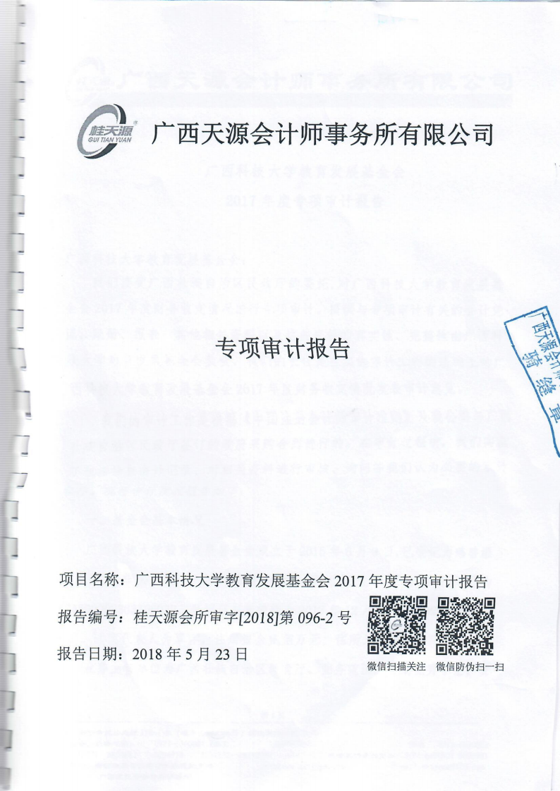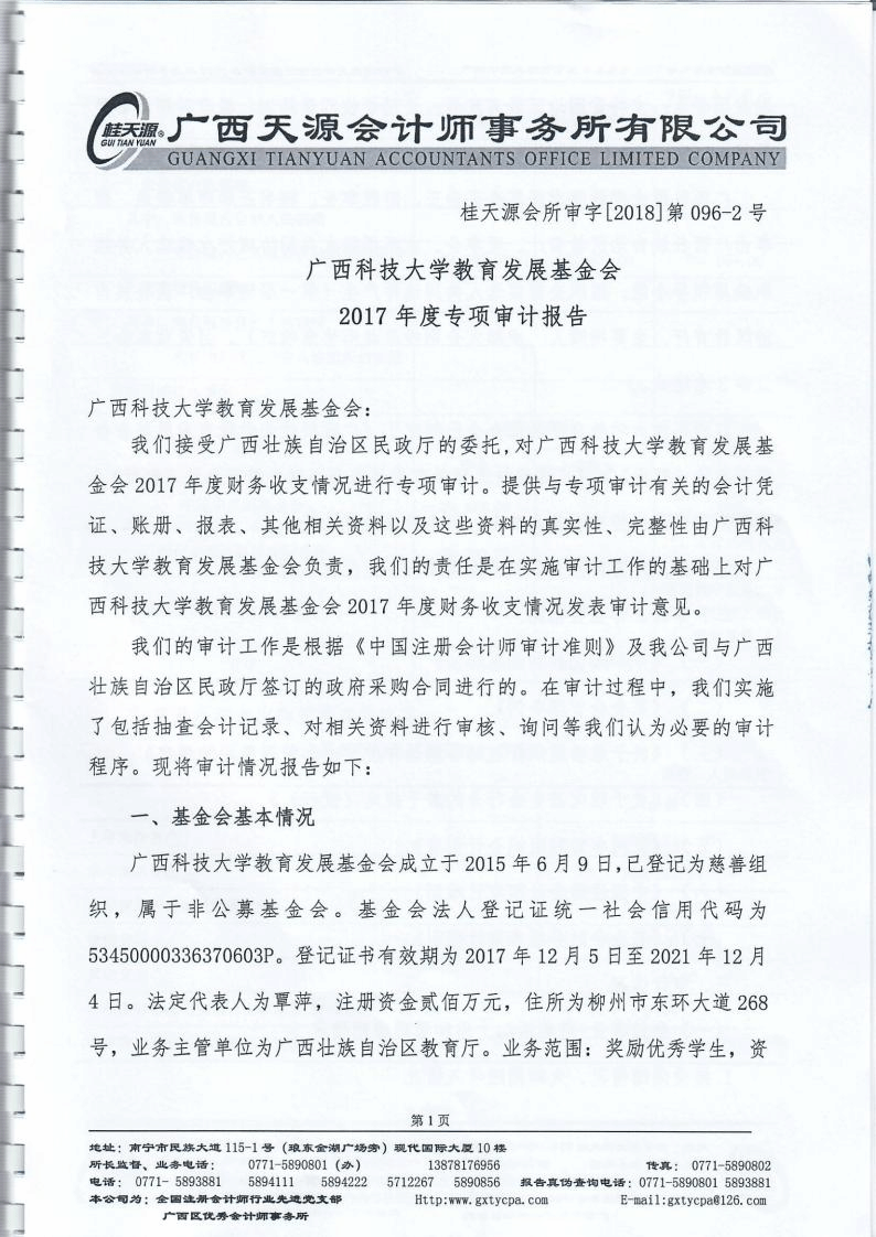 广西科技大学教育发展基金会2017年度专项审计报告