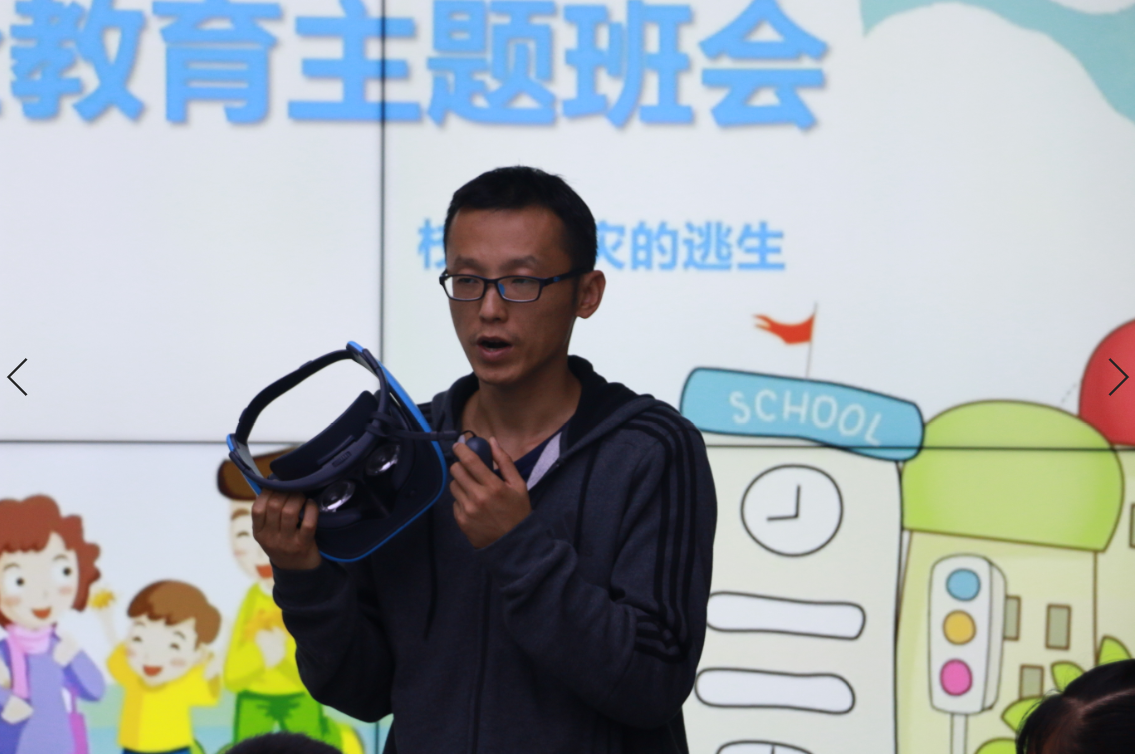 活动首先由威爱学院欧老师介绍VR技术的相关概念,并介绍了学院的发展概况。接着进入体验环节,孩子们迫不及待戴上虚拟现实头显,跟随老师进入了火灾隐患排查与逃生、深海探秘、遨游太阳系、参观湘江战役纪念馆等体验场景。新奇的体验和神奇的场景使孩子们时不时发出阵阵惊叹与欢笑声。