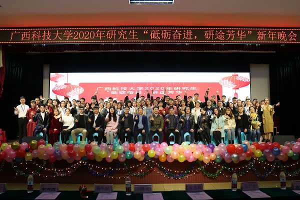 12月28日晚,广西科技大学2020年研究生“砥砺奋进研途芳华”新年晚会在东环校区如期而至。研究生工作部(处)部(处)长廖志高、校团委书记朱广生、校党委宣传部副部长宋海霞、研究生工作部(处)副部(处)长刘胜永和杨年炯、艺术与文化传播学院副院长金钱伟、部分研究生导师、研究生工作部管理科全体老师、优秀校友代表及在校研究生们参加了本次晚会。