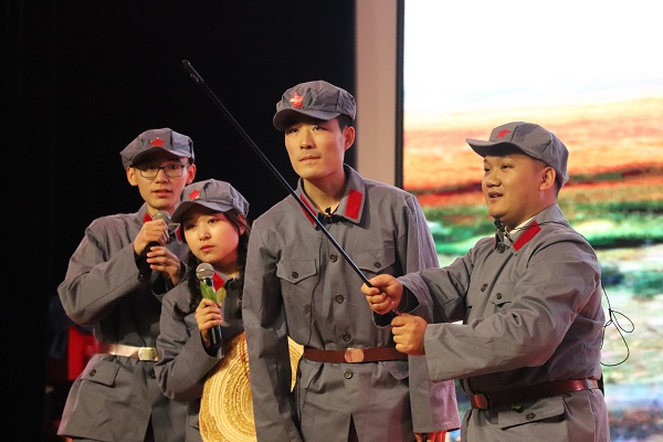 晚会共分为两个篇章,第一篇章主题是“百年中国梦”。从“五四青年运动”开始,将建党伟业、万里长征、建国大业、改革开放和不忘初心等历史场景一一重现。通过舞台剧、红歌歌唱、红诗朗诵和手语舞等各种表演形式,表现了在中国共产党的领导下,中国人民从站起来、富起来到强起来的百年奋进历程。一场场的经典场景将研究生的爱国情怀抒发得淋漓尽致,使大家激情澎湃,充满了自豪!