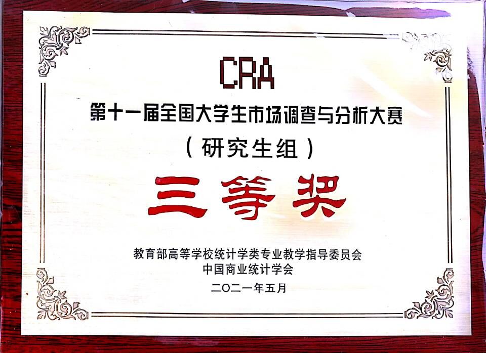 5月15日至16日,由教育部高等学校统计学类专业教学指导委员会、中国商业统计学会主办的“正大杯”第十一届全国大学生市场调查与分析大赛总决赛(研究生组)在云南大学落下帷幕。我校理学院应用统计专业参赛项目《关键时刻,不掉“链子”——新冠疫情下消费者对于冷链食品购买意愿的调查》荣获全国总决赛二等奖。在本次比赛中,我校共获得全国二等奖1项、三等奖1项的佳绩。
