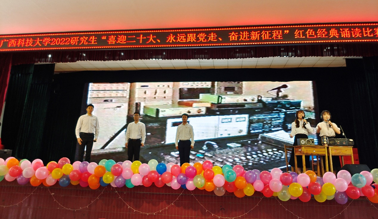 由研究生工作部主办的2022年研究生科技文化节之研究生红色经典诗歌诵读比赛于5月28日下午在东环校区大学生活动中心顺利举行,引领大家重温红色峥嵘岁月,抒发爱国情怀。评委由学生工作部(处)梁贞巧副部(处)长、资助中心高小尧副主任、人文艺术与设计学院胡艳秋老师、研究生工作部吴幸雅老师等四位老师担任。研究生工作部(处)杨年炯副部(处)长以及研究生管理科老师出席了比赛。