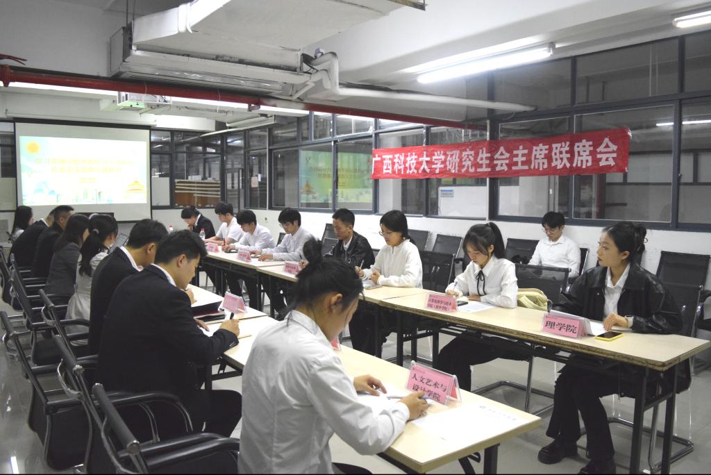 11月27日下午,广西科技大学第十八次研究生会主席联席会于文昌校区学生教育管理服务中心会议室顺利召开。党委研究生工作部副部长秦利平老师、党委研究生工作部研究生管理科科长韦剑老师、校研究生会主席团成员、各学院研究生会主席团成员参加了本次会议,会议由校研究生会主席团成员孟廷宇主持。