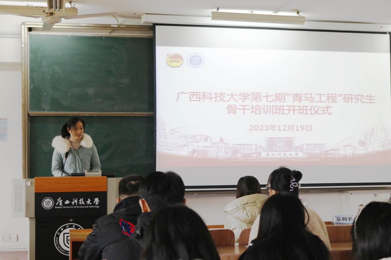 接着,在庄严的国歌声中,秦利平副部长宣布第七期培训班开班并致辞。她提到,党的十八大以来,以习近平同志为核心的党中央对青年给予厚望及充足信任,“青马工程”培训班是学校培养青年马克思主义者的一项重要措施。研究生骨干应该具备良好的专业素质和政治素养,坚持走中国特色社会主义道路,用马克思主义理论武装头脑,以“青马工程”为起点,成为政治坚定、素质全面的优秀青年马克思主义者。她还对学员们提出期望,希望研究生骨干们能坚定理想信念,做马克思主义的拥护者;坚持知行合一,做马克思主义的实践者;争当先锋模范,做马克思主义的传播者。