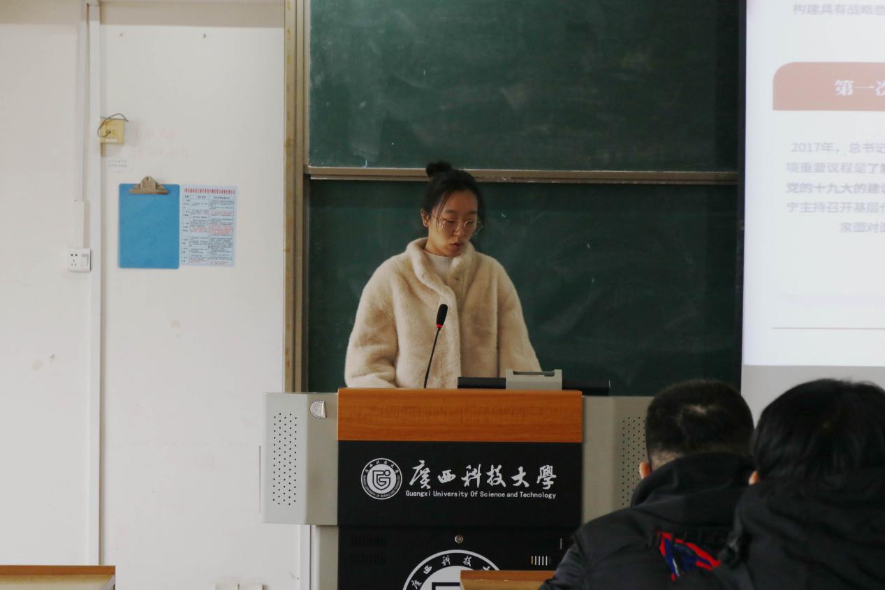 在“博学之星”干部讲坛环节,胡欣月同学通过习近平总书记在广西的四次考察,介绍了广西紧紧围绕党中央的工作部署,解放思想,创新求变,促进高质量发展;校研究生会主席团成员孟廷宇同学讲述了学生干部如何平衡学业与工作,并结合自身经验,介绍了在新闻稿撰写过程中需要注意的各种细节;校研究生会主席团成员霍钆旭同学带领大家学习了习近平新时代中国特色社会主义思想的相关内容。