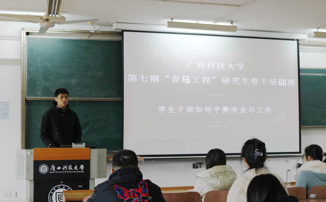 为引导研究生骨干践行社会主义核心价值观,树立坚定跟党走中国特色社会主义道路的理想信念,2023年12月19日下午,党委研究生工作部在文昌校区第五教学楼北301举办了我校第六期“青马工程”研究生骨干培训班结业暨第七期培训班开班仪式,并组织开展了第七期培训班第一次集中授课。党委研究生工作部副部长秦利平、研究生管理科韦剑、第六期培训班学员代表以及第七期培训班全体学员参加了本次教育活动。教育活动由校研究生会主席团成员黄飞主持。