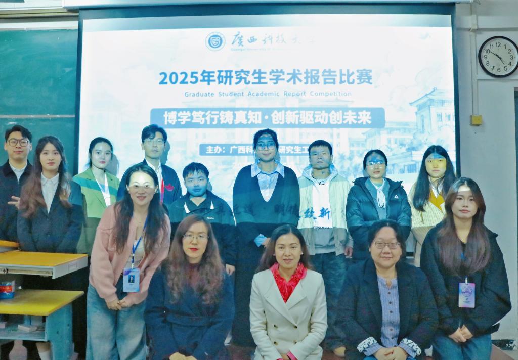 12月16日下午,“博学笃行铸真知,创新驱动创未来——广西科技大学2025年研究生学术报告比赛”在文昌校区第五教学楼举行。比赛分设自然科学组和社会科学组两个赛道,自然科学组评委由计算机科学与技术学院王智文、机械与汽车工程学院陆静、生物与化学工程学院唐婷范3位老师担任;社会科学组评委由马克思主义学院赵芸、人文艺术与设计学院崔娟、经济与管理学院边国俐3位老师担任。