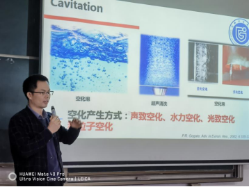 张昆明副教授讲座的主题为《水力空化:一种在化学和食品工业中用于强化物理和化工过程的新兴技术》,他介绍了空化现象的历史起源、产生方式,以及水力空化的基本概念、能量转换和诱导产生的空化效应;深入探讨了水力空化作为一种新型的过程强化技术,在化学和食品工业中用于强化物理和化工过程中的新进展,并描绘了其在强化制取多糖纳米颗粒领域的应用潜力。