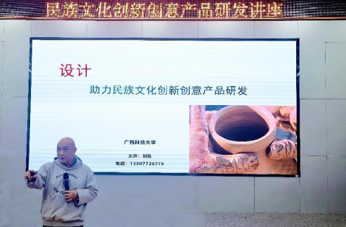 2022年12月10日傍晚,广西科技大学人文艺术与设计学院设计专业教授、硕士研究生导师,国家高级工艺美术师、国家高级设计师刘凯老师在文昌校区图书馆报告厅,开展了《设计助力民族文化创新创意产品研发》的学术讲座,有艺术设计领域的各级硕士研究生近百人参与此次讲座。