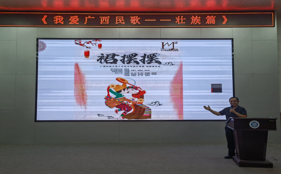 据悉,本次音乐学术讲座由 “我爱广西民歌”(壮族篇)和“广西民歌主题”线上直播音乐会两个主题板块组成。讲座内容不但涵盖广西民歌的定义内容、区域分类,而且包括壮族民歌的传播类型和演唱特点。通过图文并茂的PPT立体呈现和深入浅出的精彩讲解,既普及传播了广西民歌的理论知识,又激发了大家对优秀壮族民歌作品的关注和热爱。积极营造了“我爱广西、我爱民歌”学术研究氛围,凸显了音乐陶冶情操、和谐净化心灵的美育教化作用。本次壮族民歌主题讲座成功举办集中体现了学院坚持走“民族化、国际化”的办学特色,有效地弘扬了广西壮族优秀民歌和非遗文化的艺术成果。
