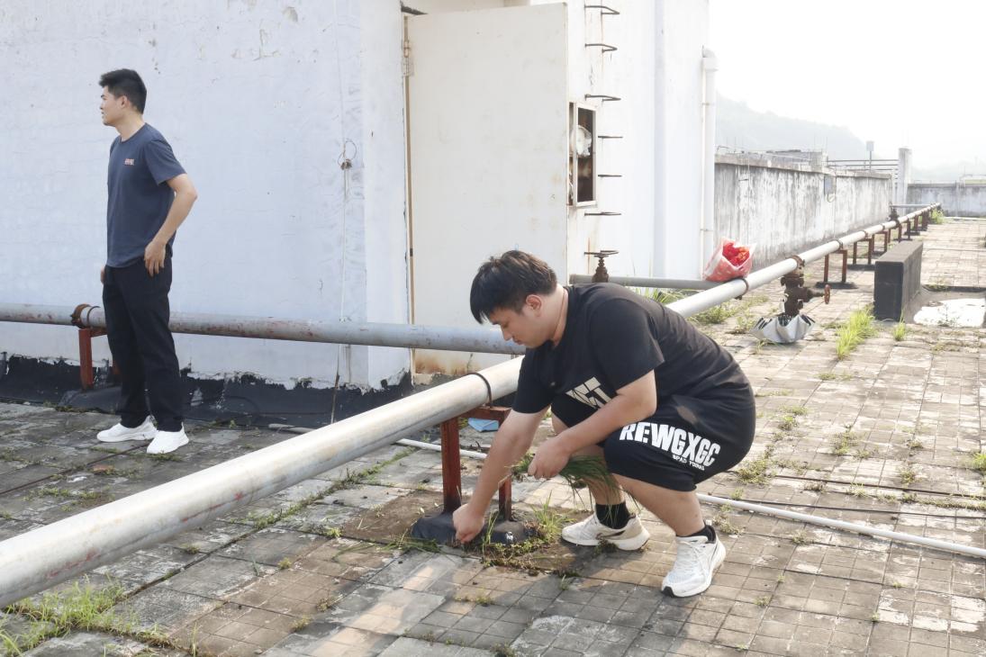 志愿者们手拿剪刀、手套、扫帚等工具,面对天台上横生的杂草,充分发扬不怕脏、不怕苦、不怕累的劳动精神,有条不紊地拔除杂草。经过一上午的辛勤劳动,天台上的杂草被清除干净,校园环境焕然一新,显得愈发和谐而美好。