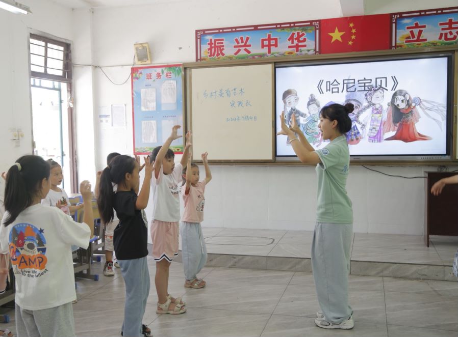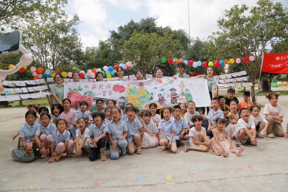 “艺动童心筑梦同行”乡村美育实践队围绕“铸牢中华民族共同体意识”“中华优秀传统文化”等主题,选取具有浓厚民族文化元素的艺术作品作为主要授课内容,为融安县泗顶镇59名儿童送上了形式多样、内容丰富的音乐、美术、舞蹈等美育课程,让乡村儿童在感受美、欣赏美、创造美的同时,鼓励和引导他们积极弘扬和传承中华优秀传统文化。