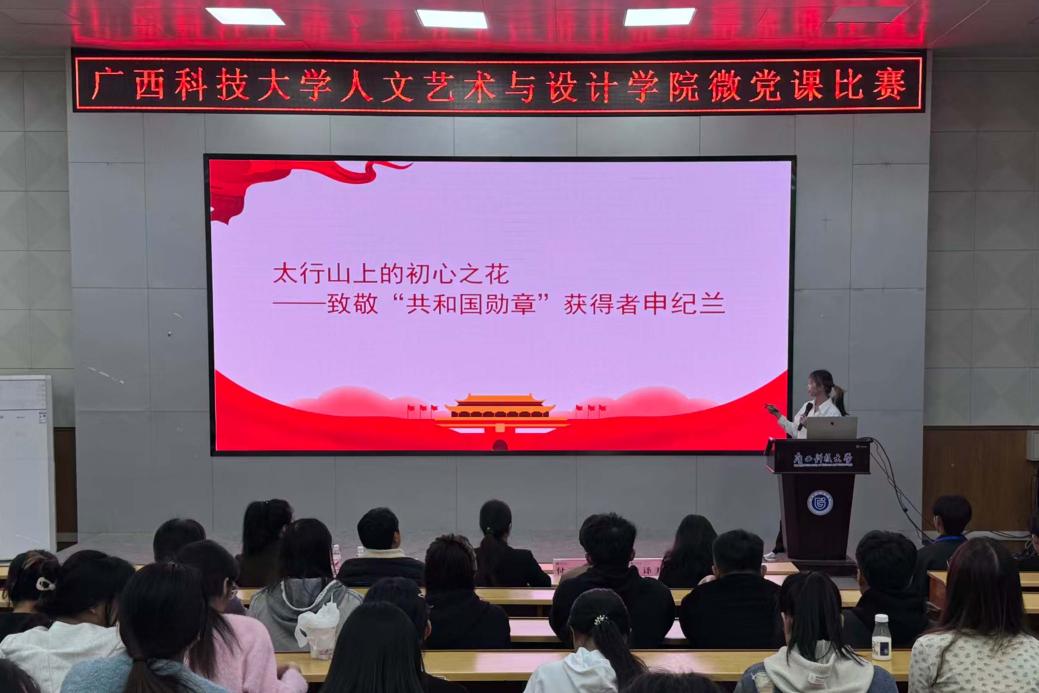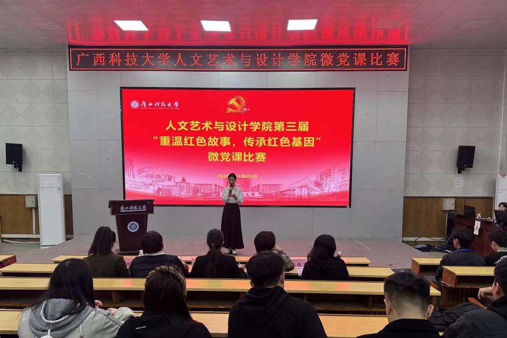 11月25日晚,人文艺术与设计学院在文昌校区图书馆报告厅举办第三届“重温红色故事,传承红色基因”微党课比赛。活动由学院学生党建办公室承办,学院党委书记刘莉莉、党委副书记、纪委书记沙磊,各党支部书记代表、辅导员代表及全体党员、入党积极分子参加活动。