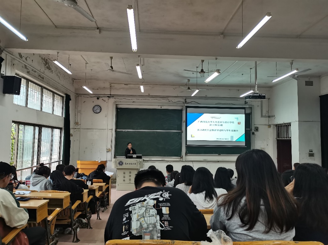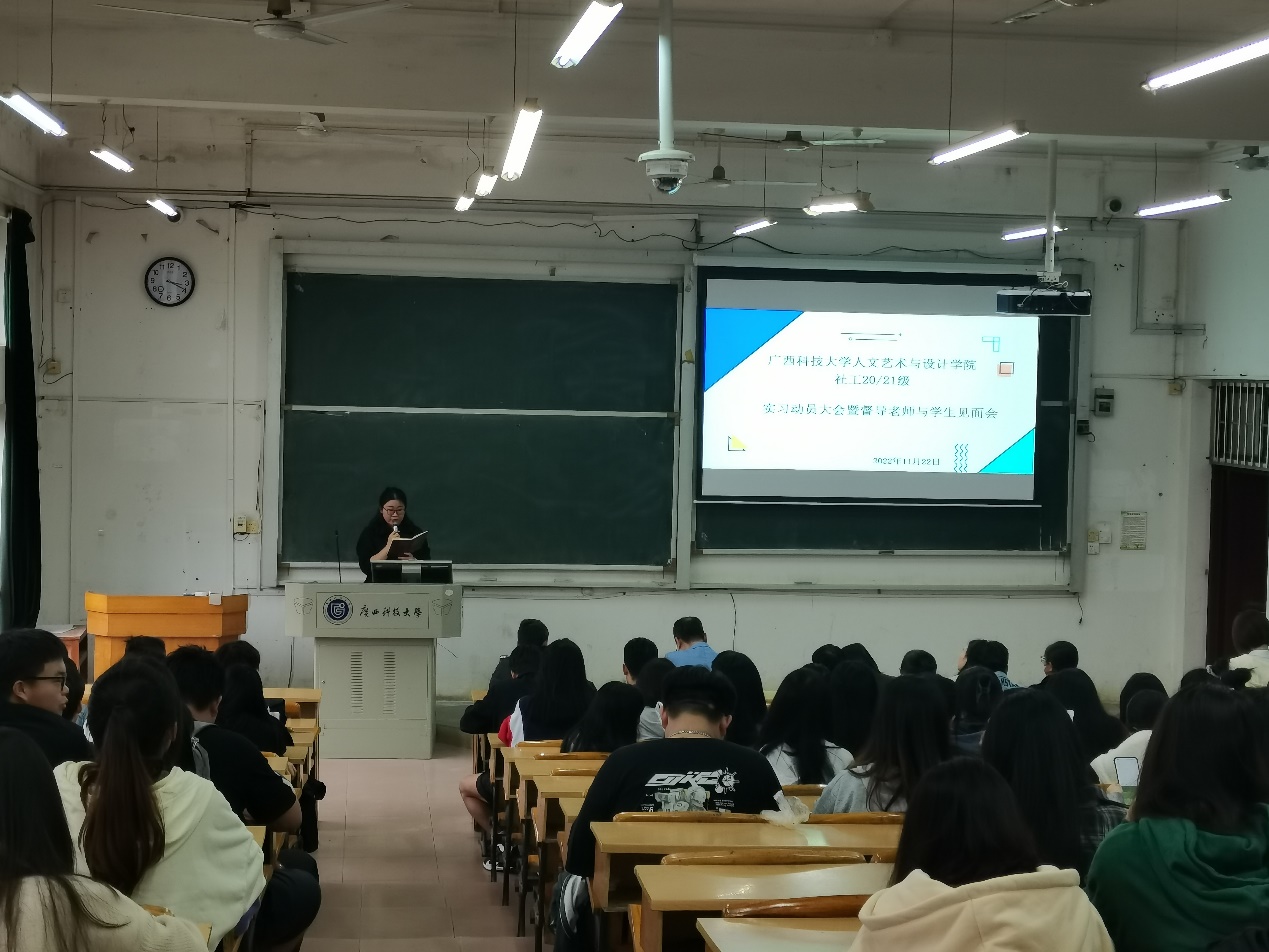2022年11月22日下午15:00-15:30,广西科技大学人文艺术与设计学院社工20级和21级在第三教学楼3-101教室召开《课程实习与学年论文》和《社会调查与认知实习》动员大会暨督导老师与学生见面会。社工教研室熊顺聪、李鹏、高静、魏三珊、韦志均、莫艳婷、朱媛和戴浩等老师出席大会。本次大会由戴浩老师主持,社工20/21级全体学生参加会议。