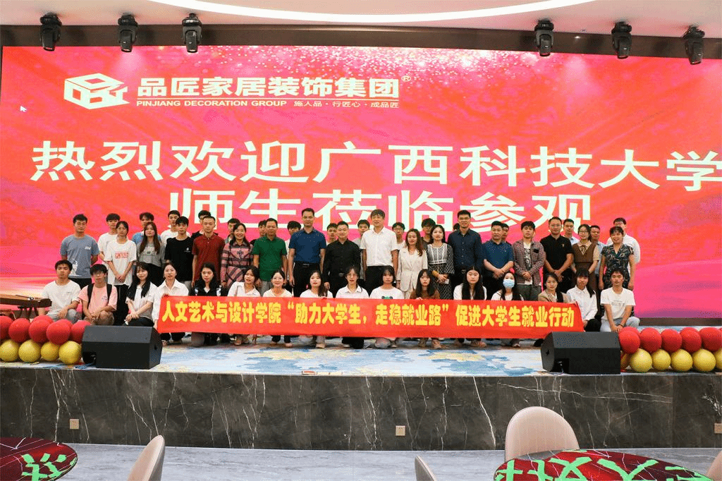为提升学生的就业能力,增强对就业形势的认识,11月12日,广西科技大学团委书记、学生工作部副部长朱广生,就业指导中心副主任邓建春,人文艺术与设计学院党委副书记沙磊,人文艺术与设计学院辅导员梁译尹以及艺术学院学生到品匠家装超市进行参观交流。