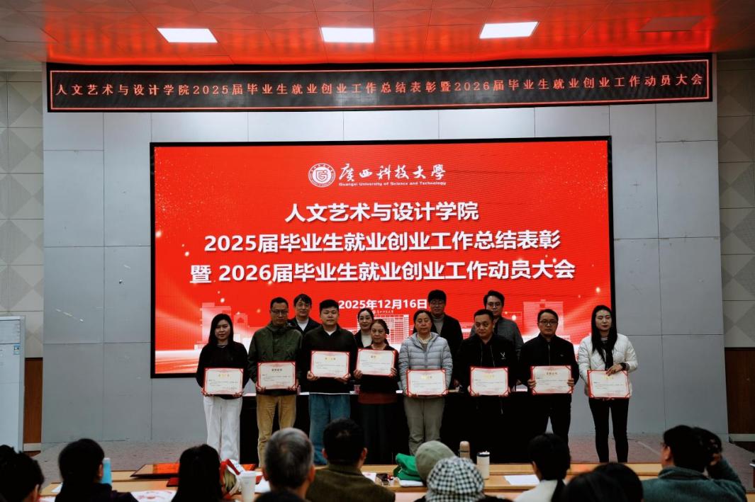 12月16日下午,学院在图书馆报告厅召开2025届毕业生就业创业工作总结表彰暨2026届动员大会。学院领导班子、全体教职工及毕业班学生代表参会,会议由学院党委副书记、纪委书记沙磊主持。