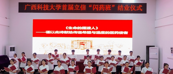 6月19日晚,药学系首届“立信闪药班”结业典礼在柳石校区1111报告厅举行。药学系领导班子成员、广西立信医药有限公司高管、首届学员及师生代表共200余人出席活动。
