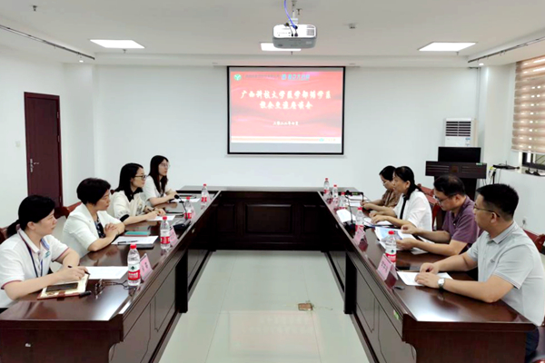 为进一步深化校企合作,持续推进毕业生实习、就业工作,7月19日,药学系党总支书记陈恒、主任蒋旭东等一行5人赴广西柳药集团股份有限公司(下称柳药集团)开展调研交流,与柳药集团人力资源中心总监莫晓萍、桂中大药房副总经理胡龙英、桂中大药房招聘培训副经理余春等进行座谈。