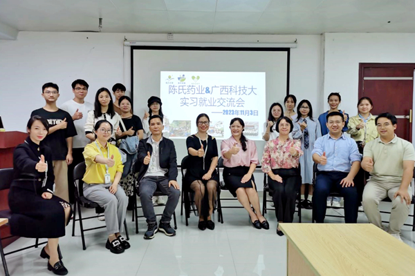 为进一步深化校企合作,持续推进毕业生实习、就业工作,11月3日,药学系党总支书记李艳霞,党总支副书记唐艳红,副主任何宇伟,团总支书记、学工办主任潘珏年及2024届毕业生代表等15人赴广西陈氏药业有限责任公司(下称“陈氏药业”)开展调研交流。陈氏药业行政部经理朱梅英、人事部经理陈璐、储运部经理周文俊、储运部主管韦媚柳等6人出席交流会。