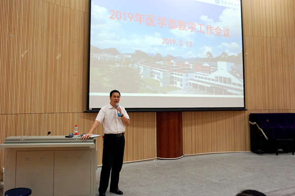 5月13日早上10点,医学部2019年教学工作会议在柳石校区医学实验楼第一报告厅召开。医学部领导、各系(部)主任、分管教学副主任,各教研室主任,教学秘书,实验室中心主任,第一临床医学院、第二临床医学院分管领导或代表,以及教学办全体工作人员参加了此次会议。