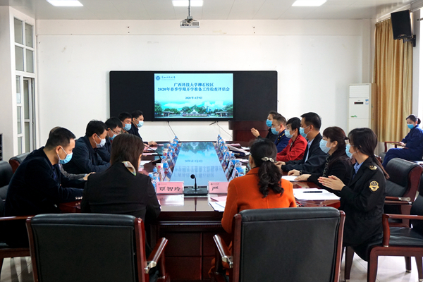 4月9日上午,由柳州市鱼峰区副区长黄小荣带队的鱼峰区2020年春季学期开学前学校疫情防控工作检查组一行七人,到我校柳石校区检查开学准备工作。汇报会在柳石校区3202会议室召开,校党委常委、副校长杨晓波参加并主持会议。