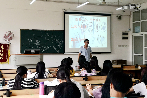 9月11日上午,药理教研室韦运东副教授从“尊重药物,敬畏药物”的角度给药学(专)197班的同学导入药理学绪论,通过讲解滥用药物和不合理用药的危害,强调医风、医德的重要性。结合新冠肺炎疫情爆发后,国家不惜投入巨大的人力、财力救治患者并开展疫苗研发,目前国药集团新冠肺炎疫苗临床试验速度已走在世界前列。疫情发生以来,祖国迅速、平等、无私的应对方式充分体现了“生命至上”的治国理念,值得每一位同学接棒和继续发扬。