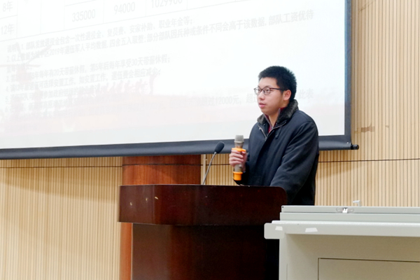 宣讲会分为观看征兵宣传片、征兵政策宣讲、退役学生参军感言、军姿表演、现场咨询五个环节,《参军报国,不负韶华》的征兵宣传片看得同学们热血沸腾;入伍政策宣讲让同学们全面了解了国家的政策;钟展书同学的参军感言带领同学们深入了解军营生活;退伍同学的军姿表演,展现军人的飒爽英姿,深深感染在场同学;在现场咨询环节,辅导员梁典胤老师和退伍复学同学就同学们关心的征兵就学、就业、经济补助等方面政策进行了详细的解释说明,对同学们提出的有关学费减免、落户要求、复学助学等相关问题作了耐心的解答。