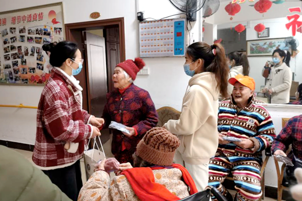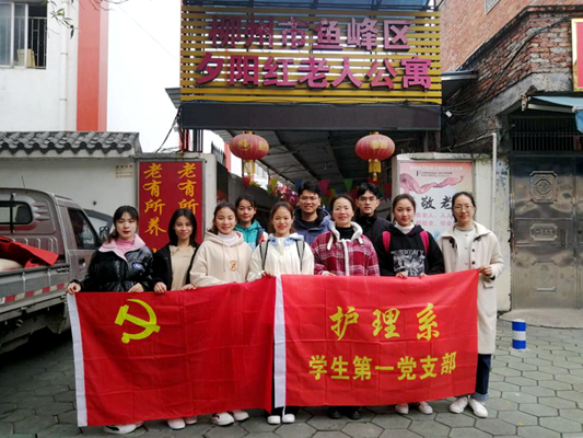 12月26日上午,护理系学生第一党支部青年党员一行10余人到柳州市夕阳红老人公寓开展“红翼天使”志愿服务活动,党员们发挥自身所长,为老人们送去健康与关爱。