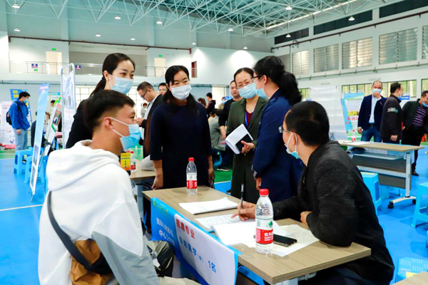 4月28日,学校2021届医学类毕业生夏季招聘会在柳石校区体育馆举行,共有来自区内外220余家医药卫生类单位到校招聘,提供就业岗位6269个,医学部300多名应届毕业生参加了双选会。