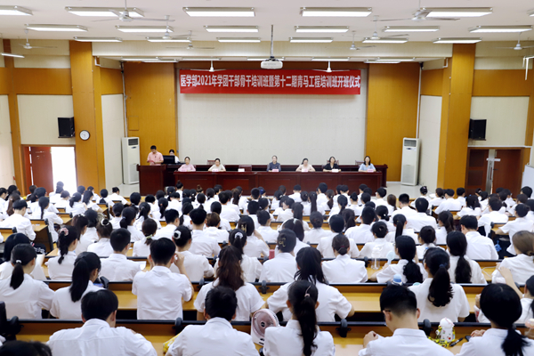 6月10日下午,医学部学团干部骨干培训班暨第十二期“青马工程”培训班开班仪式在柳石校区1310报告厅举行,医学部党委副书记刘莉莉,学部学工办副主任、团委副书记江芸玲,第一临床医学院学工办主任、团委书记唐艳红,第二临床医学院学工办主任、团委书记廖容,护理系团总支书记黄婷婷,药学系团总支书记陈房姣等出席了开班仪式。医学部各级学团干部共计304人参加了开班仪式,仪式由学部学工办副主任、团委副书记王飞龙主持。