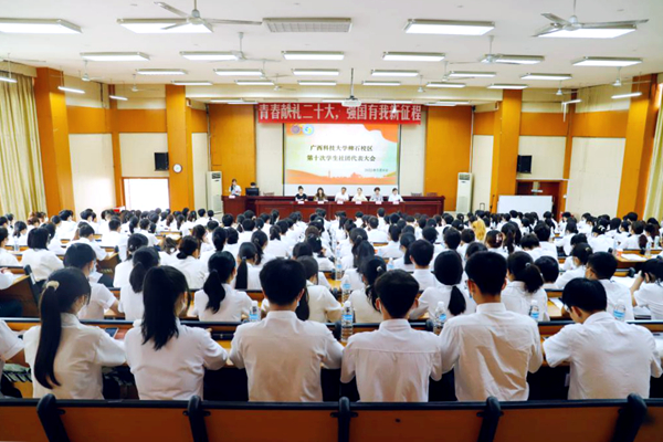 5月8日上午,柳石校区第十次学生社团代表大会在1310报告厅召开。学校团委副书记文家燕,医学部党委副书记蓝娟,学校团委社团管理部部长赖莹莹,医学部学工办副主任、团委副书记覃芳芳,团委委员衣秋雨出席本次大会。学生社团联合会柳东、柳石分会代表及柳石校区各社团代表共300人到场参会。