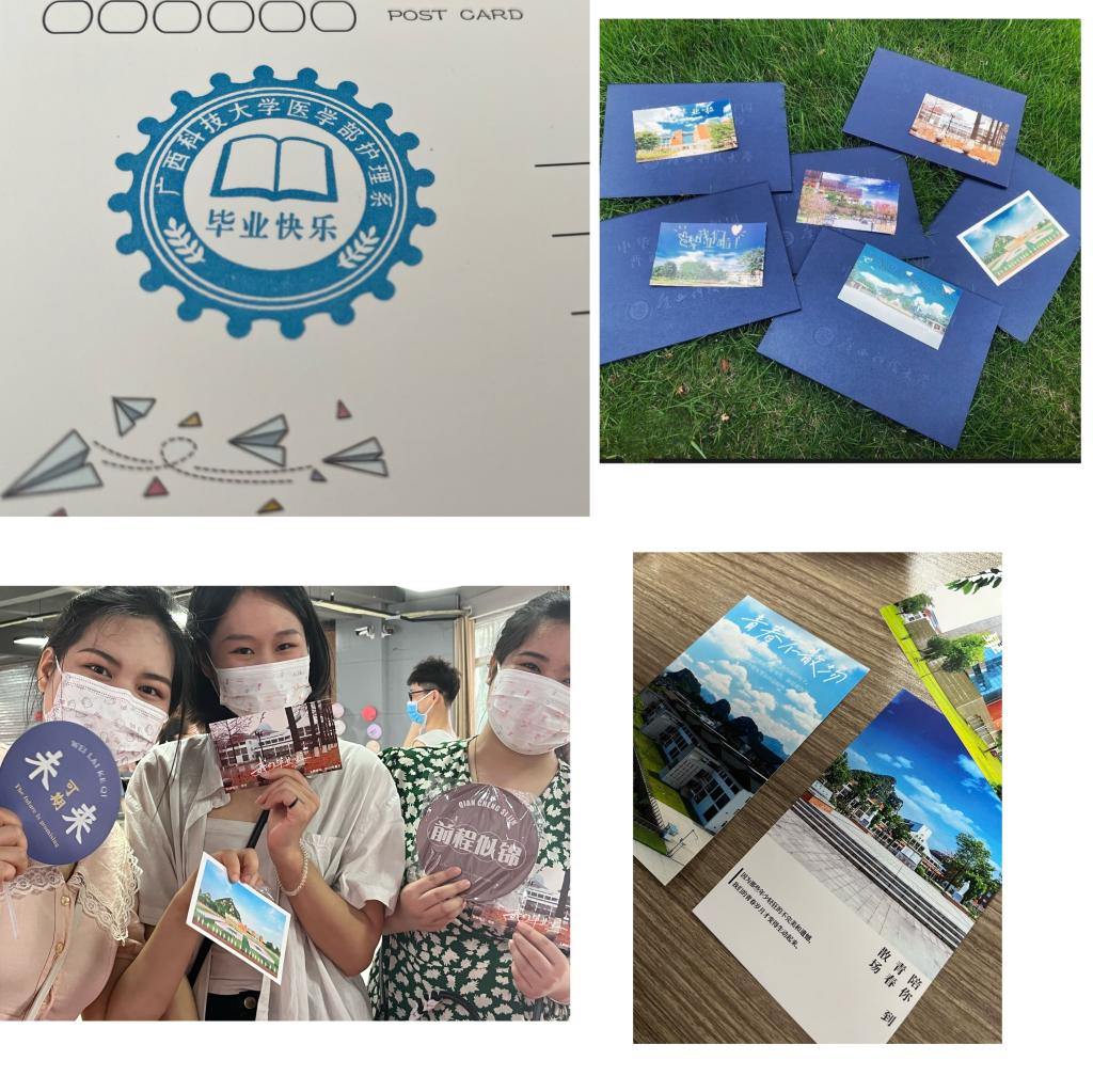 毕业典礼上,护理系为198名本科毕业学生举行了学位证书授予仪式。同学们手持毕业氛围浓郁的手牌,纷纷与老师合影留念,离情依依。精心布置的毕业典礼现场,除了为今年毕业的1244名同学赠送了定制版校园风光专属明信片,系部领导还为每位学生毕业赠言并亲自盖上“毕业快乐”字样的专属章印。大家笑逐颜开,满怀感动与温暖地领取了印有美好祝福文字的扇子。