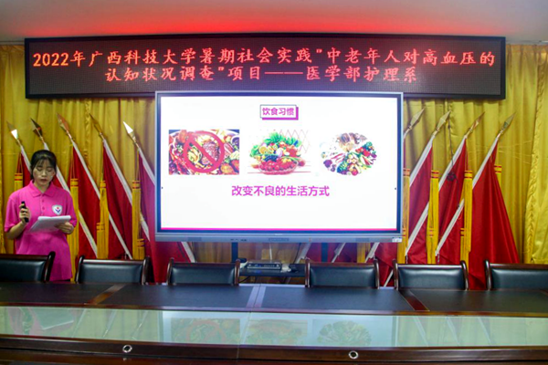 为提高社区居民对高血压疾病的重视,普及高血压病症基本常识,提高社区居民自我保健意识和能力,促使养成良好的生活习惯,护理系社会实践团队开展“中老年人对高血压的认知状况调查”实践活动。同学们通过现场调研,将专业知识与实践结合起来,以通俗易懂的语言与PPT结合进行讲解,使社区居民进一步掌握了对高血压的基本表现、危害、预防措施、急救措施等基本常识。现场还设计了互动与答疑环节,同学们积极耐心地回答居民的问题并赠与小礼品。活动普及了健康知识,增强了居民的健康意识和自我保健的能力,有利于促进全民健康素质的提高。