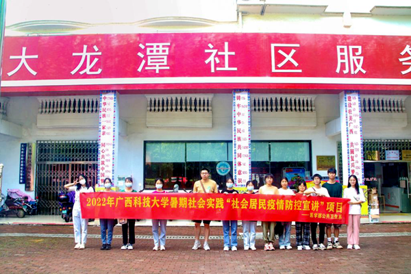 7月4日,医学部药学系、护理系和公共卫生系社会实践团队走进柳州市鱼峰区天马街道大龙潭社区,开展了理论普及宣讲、发展成就观察等一系列内容丰富、形式多样的暑期社会实践活动。