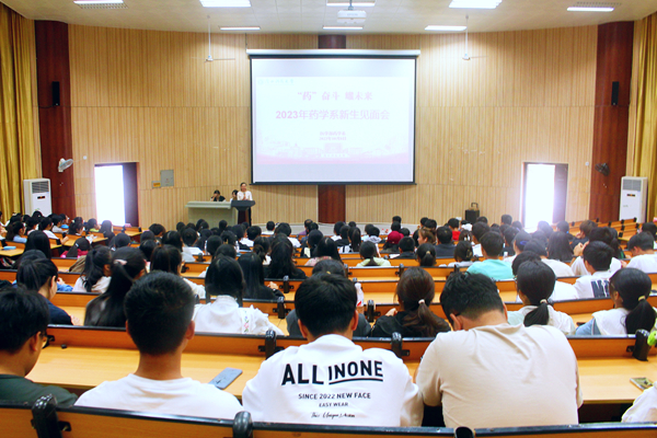 10月8日下午,药学系2023级新生见面会于柳石校区第一报告厅举行。药学系党总支书记李艳霞,系主任蒋旭东,系副主任何宇伟,各教研室主任、辅导员以及2023级全体同学到场参加。见面会由2023级辅导员覃柳云主持。
