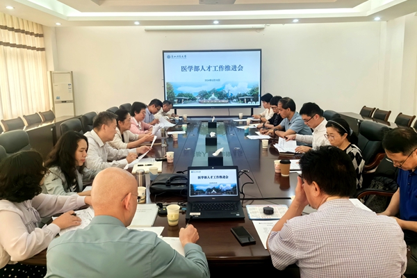 5月10日下午,医学部在文昌校区办公楼4-1会议室召开人才工作推进会,学校党委常委、副校长秦小云,学部领导班子成员,各系部党政领导,第一、二临床医学院(第一、二附属医院)相关领导参加会议,会议由学部党委副书记、常务副主任孙文忠主持。