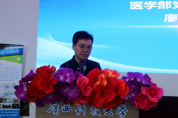 廖奕代表科大医学部致辞,她首先感谢公司对学部人才培养工作的支持,简要回顾了学部与公司的合作及取得的成果。她强调,校企合作是提升教学质量、增强学生实践能力、成长成才就业的重要途径,希望同学们珍惜机会,积极参与。