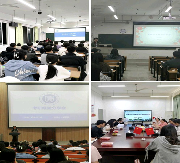 系部组织开展考研分享会,英语四、六级考试分享会,学习经验交流会、考研辅导会、学风建设座谈会、学风建设主题班会等。实施朋辈辅导促学、榜样宣讲指导,让学长学姐分享学习方法和备考技巧,从课堂学习、实验操作到课外拓展等多个角度分享交流,帮助同学们拓宽知识面,掌握考试技巧,提高备考效率。