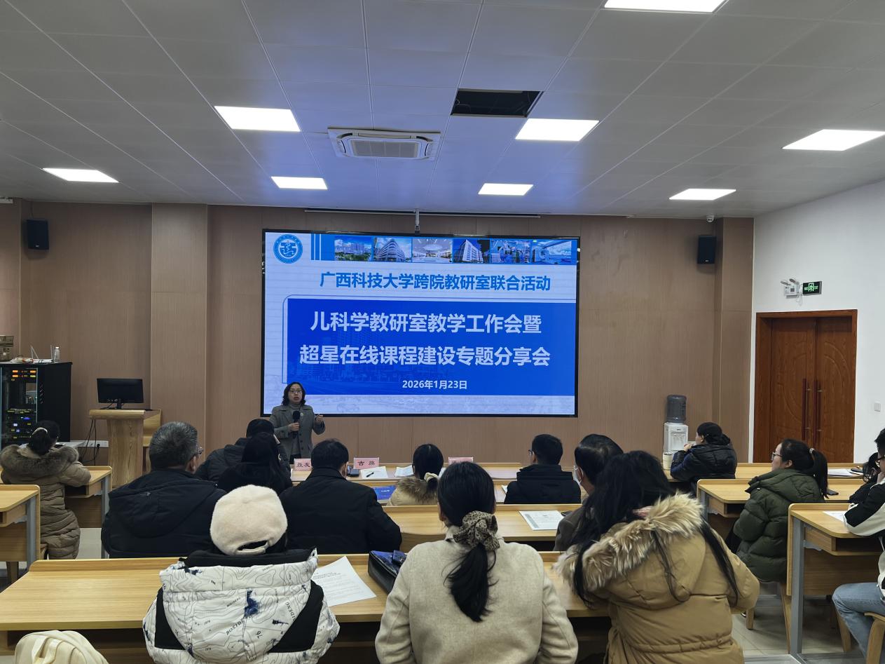 2026 年 1 月 22 日至 23 日,学校医学部在柳州市人民医院举办跨院校教研室联合教学工作会,覆盖内科学、外科学、儿科学。学校第一临床医学院、柳州市人民医院、柳州市工人医院、广州市妇女儿童医疗中心柳州医院等多家单位的教学骨干齐聚一堂,围绕教学大纲修订、教学学时优化、在线课程建设等开展深度交流研讨。