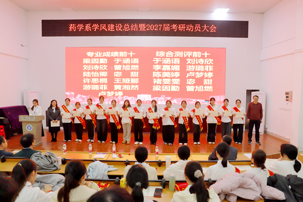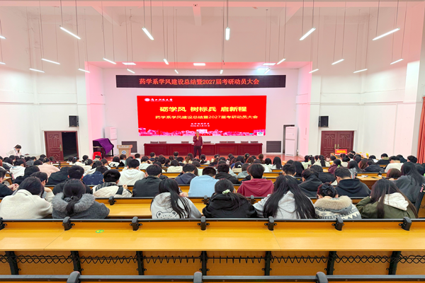 3月22日晚,药学系在柳石校区1111报告厅召开学风建设总结暨2027届考研动员大会,系党总支书记李艳霞、主任蒋旭东出席,近300名师生参会。