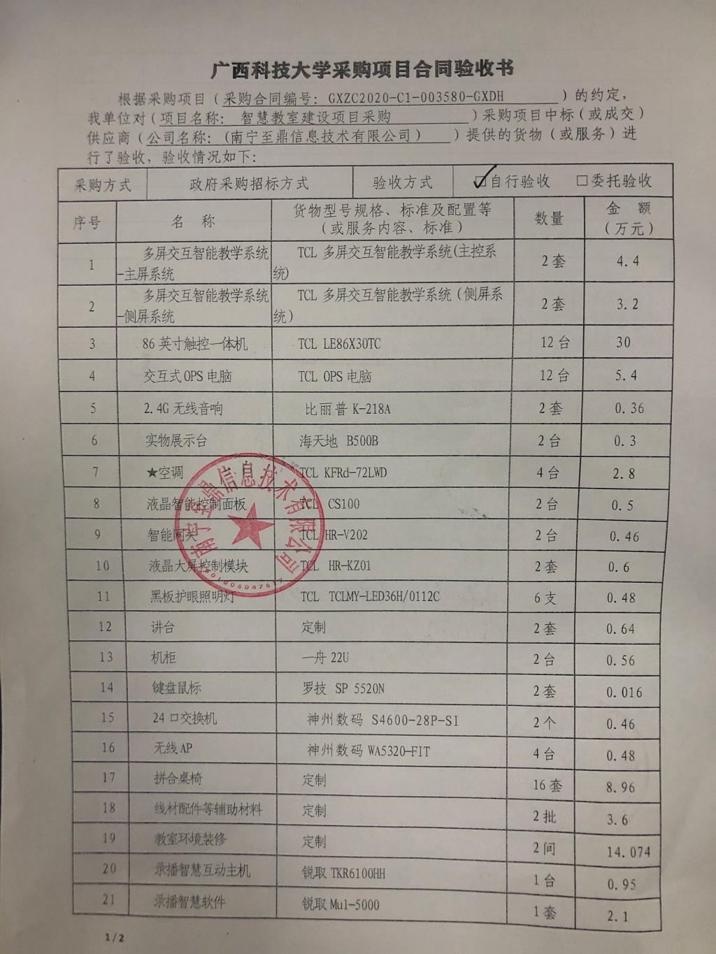 【公示】医学部智慧教室建设项目采购验收书