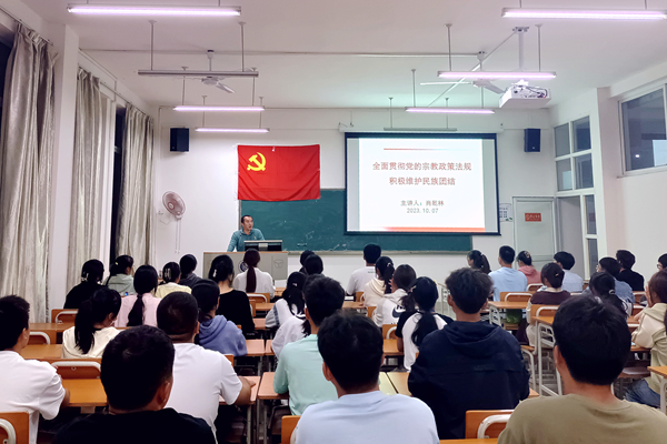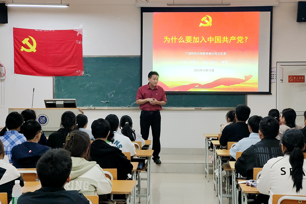 10月7日、10月12日,系党总支书记韦耀宁、副书记肖乾林、系团总支书记梁典胤分别主讲了《为什么要加入中国共产党》《全面贯彻党的宗教政策法规,积极维护民族团结》以及《中国共产党的基本知识及党员发展程序》等课程。