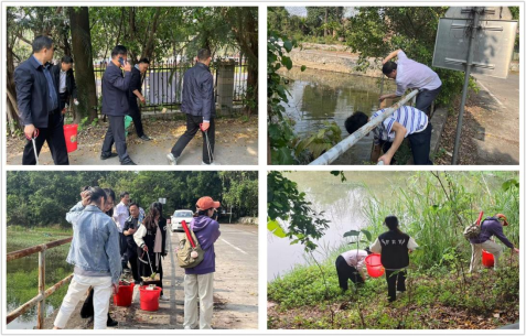 驾校训练基地作为美丽科大校园一角,草地绿化较多,在湖畔边和草丛里等卫生死角容易隐藏着垃圾,日积月累,影响环境卫生。在活动过程中,为打捞浮在湖畔表面的泡沫板、饮料瓶等污染垃圾,党员自制工具,老党员同志更是亲自上阵示范,不怕脏、不怕累,尽管汗水浸湿了他的白色衬衫,也乐此不疲。年轻同志也深受鼓舞,争先加入打捞体验。其他同志则用钳子在树底下和草丛中翻找隐藏的生活垃圾。直到满意后才结束活动,大家看到被自己清理得干干净净的地方,倍感成就,心情十分愉悦。
