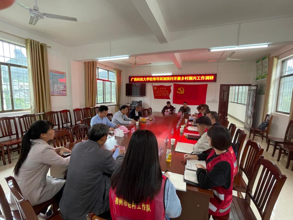调研组一行走访调研了学校定点帮扶的融安县潭头乡西岸村、新桂村,泗顶镇三坡村、泗顶村、寿局村、儒南村。通过听取汇报、查阅资料,考察文化展示墙、活动室、集体经济产业基地等,深入了解村情村貌、脱贫攻坚取得的成果和乡村振兴工作开展的情况。调研组一行看望慰问了我校驻村第一书记(工作队员),与他们亲切交谈,勉励他们强化责任担当,明确职责要求,严守各项纪律,扎实开展乡村振兴工作。