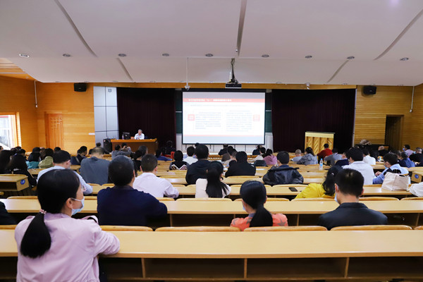 为深入学习贯彻习近平总书记在庆祝中国共产党成立100周年大会上的重要讲话精神,深刻领会和重点把握讲话的丰富内涵以及实践要求,11月5日下午,学校党委常委、副校长张发钦在东环校区第四教学楼第四阶梯教室作习近平总书记“七一”重要讲话精神集中宣讲。党委武装部、保卫处,工会,基建管理处,后勤管理处,校友工作办公室,柳东校区管理委员会,电气电子与计算机科学学院等单位教职工200多人聆听宣讲会。