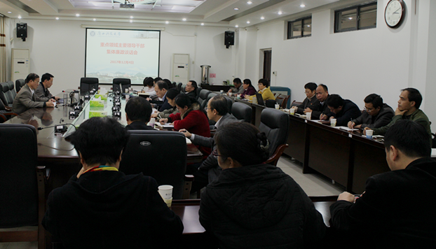 12月4日下午,学校党委、纪委在东环校区行政楼6-1会议室召开重点领域主要领导干部集体廉政谈话会,重点领域主要领导干部28人参加会议,校党委书记覃伟年参加会议并讲话。会议由校党委副书记、纪委书记张正义主持。