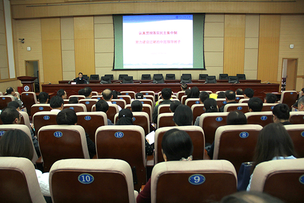 为深入学习贯彻党的十九大精神,规范各级领导班子民主决策行为,加强干部队伍作风建设,11月9日,校党委副书记、纪委书记张正义在行政办公楼多功能报告厅作题为《认真贯彻落实民主集中制,努力建设过硬的中层领导班子》学习贯彻十九大精神专题报告。学校各处级单位领导班子成员参加报告会,报告会由校党委书记覃伟年主持。