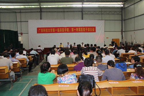 2016年10月18日上午,我校第一临床医学院、第一附属医院召开干部大会,宣布任命第一临床医学院(第一附属医院)新一届领导班子。学校党委书记覃伟年、副校长姚金光、组织部副部长王春江出席会议,第一附属医院领导、中层干部、护士长,以及副高级以上职称职工共130人参加了会议。